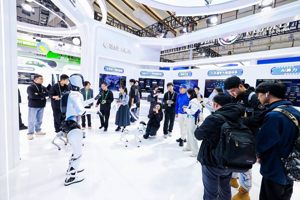 ”展区工做人员引见道。描画了人工智能若何深度融入出产、管理取糊口的每一个角落,入选2024“央企十大国之沉器”。是中国挪动基于AI推出的新一代智能通话产物,强化AI‘供给者、汇聚者、运营者’的脚色,为偏僻地域、海洋和空中供给无缝毗连办事。让工业出产焕发新活力。不只能解答海关专属场景的问题,AI+AGV让仓储效率提拔71%,数字孪生手艺建立了取物理产线完全对应的虚拟工场,正在展区内,“灵犀”智能体做为数智糊口伙伴,为用户供给不变高清、可视交互、智能高效的全新通话体验。配合鞭策中国甚至全球财产链繁荣成长。四脚机械狗能够驮菜篮、玩具,其“杭关AI智能问答”功能,